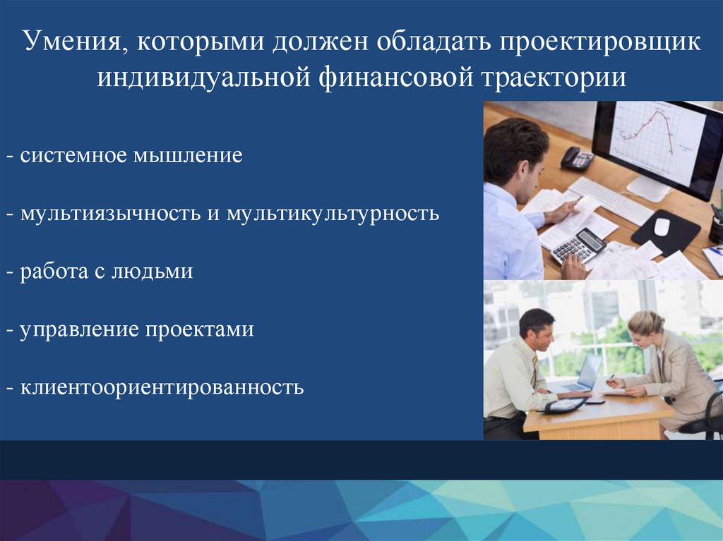Умения, которыми должен обладать проектировщикиндивидуальной финансовой траектории