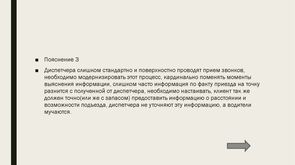■ Пояснение 3■ Диспетчера слишком стандартно и поверхностно проводят прием звонков,