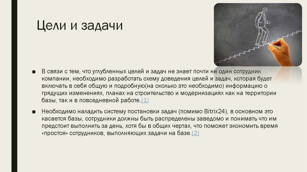 Цели и задачи■ В связи с тем, что углубленных целей и задач не знает почти ни один сотрудник