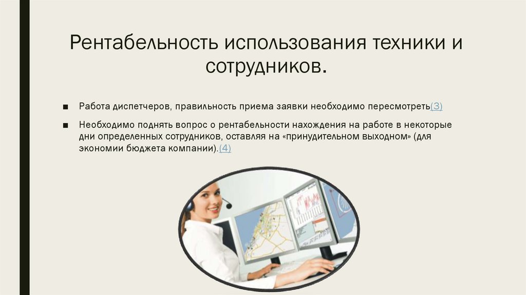 Рентабельность использования техники исотрудников.