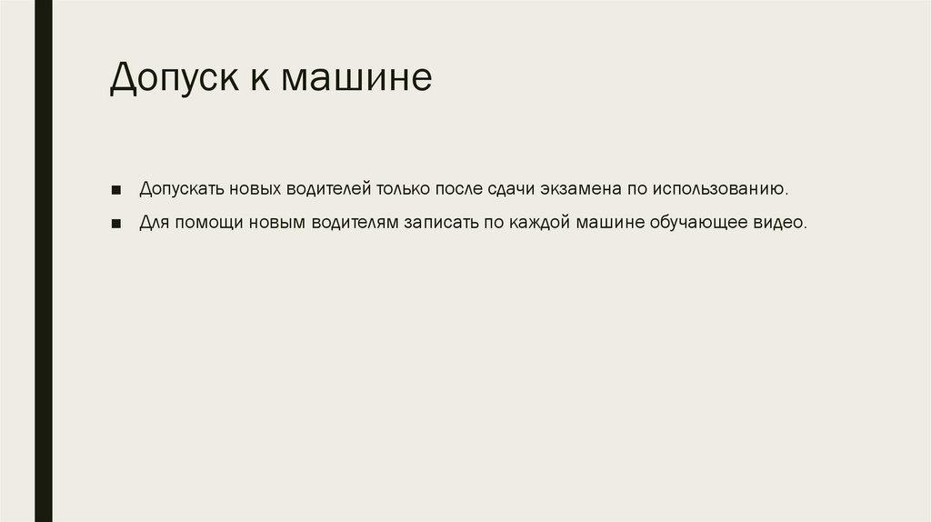 Допуск к машине■ Допускать новых водителей только после сдачи экзамена по использованию.