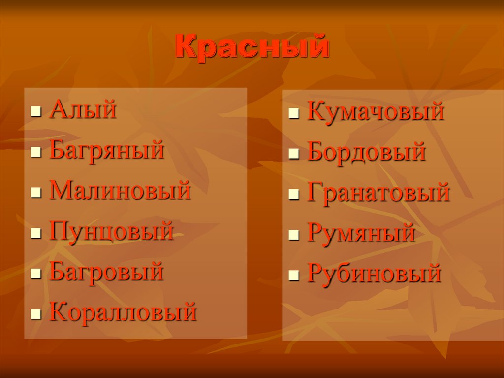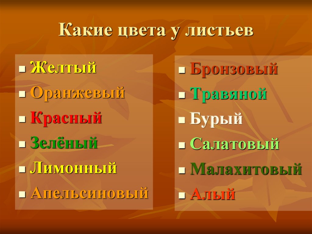 Какие цвета у листьевЖелтый