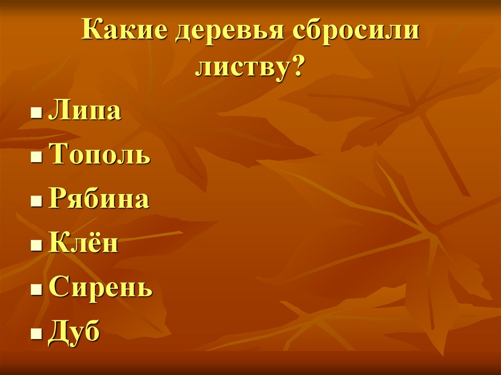 Какие деревья сбросилилиству?
