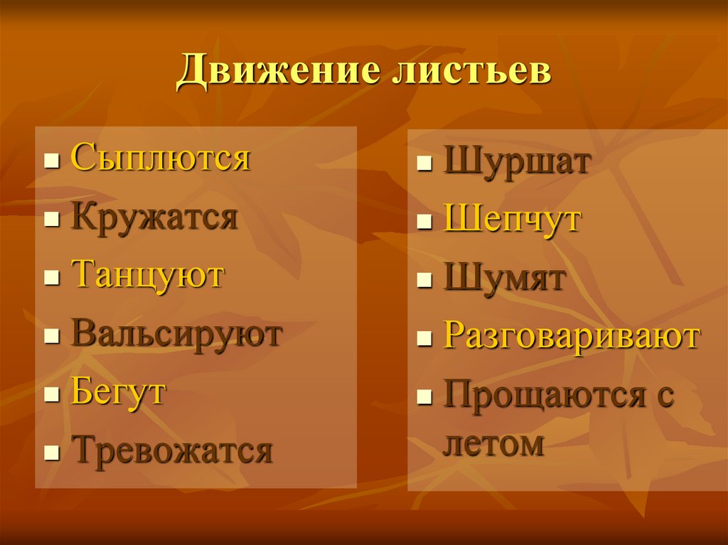 Движение листьевСыплются