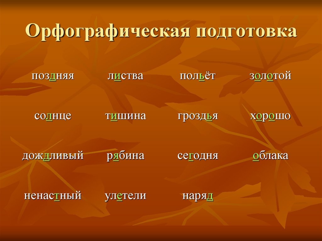 Орфографическая подготовкапоздняя