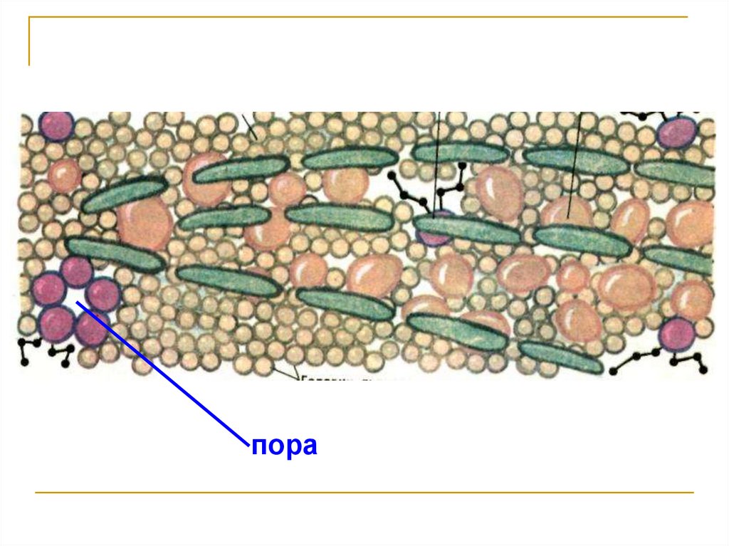 гликоген, капли жира)