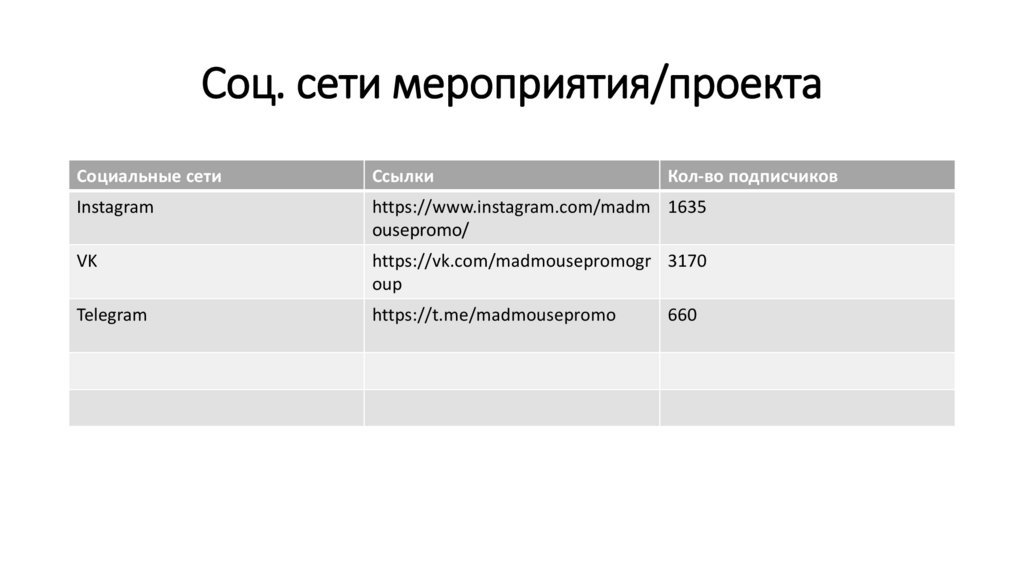 Какие крупные мероприятия проходили (ссылки на фотоотчёт в соц сети)