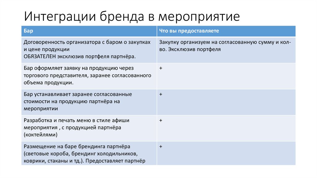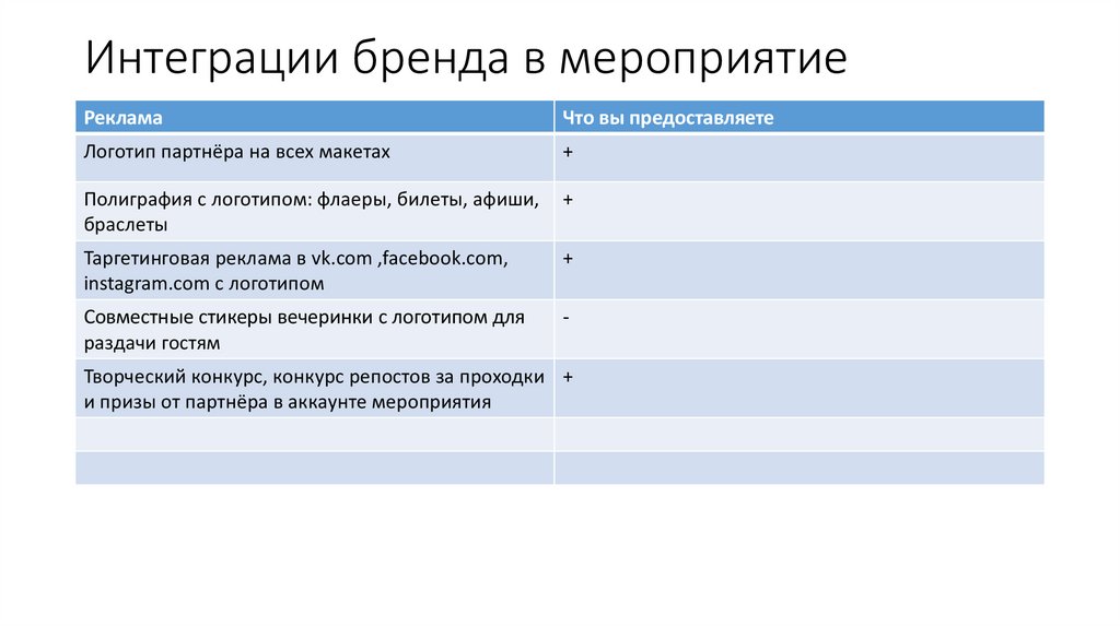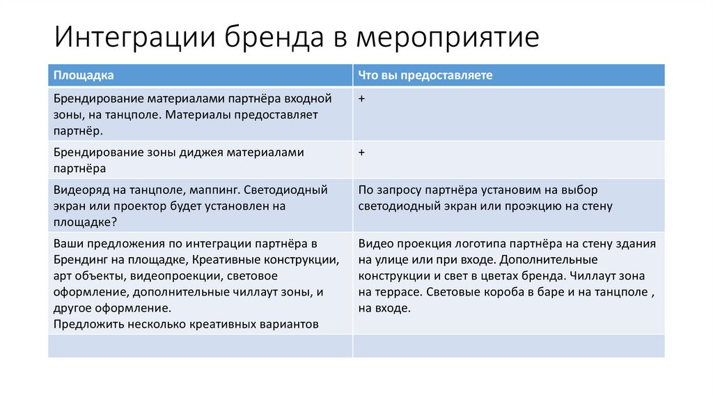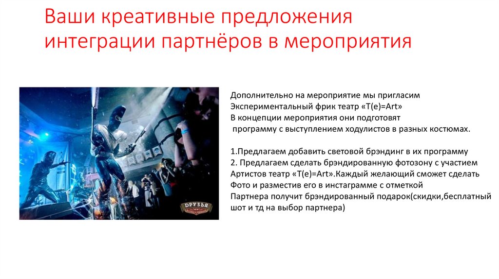 Ваши креативные предложенияинтеграции партнёров в мероприятия