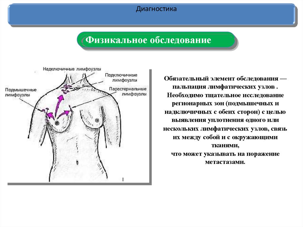 метастазирования (подмышечных, над-, подключичных). При осмотре необходимо обратить внимание