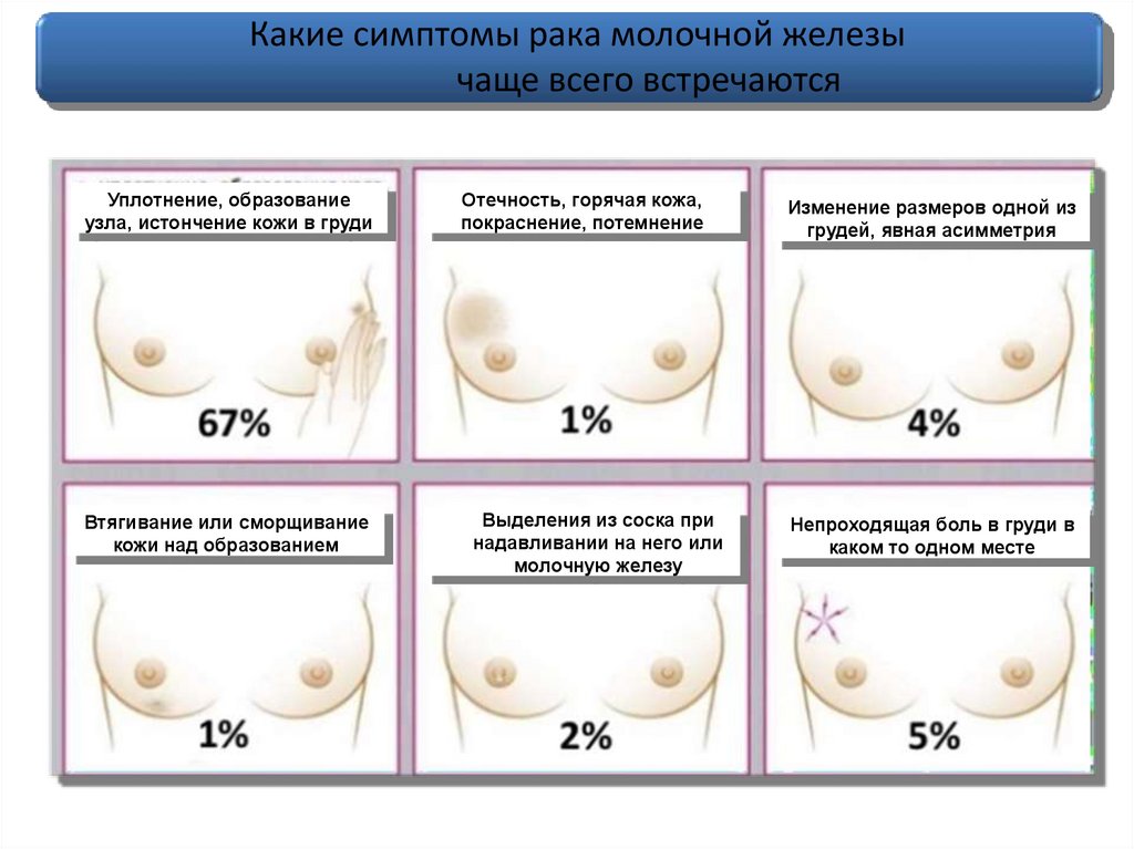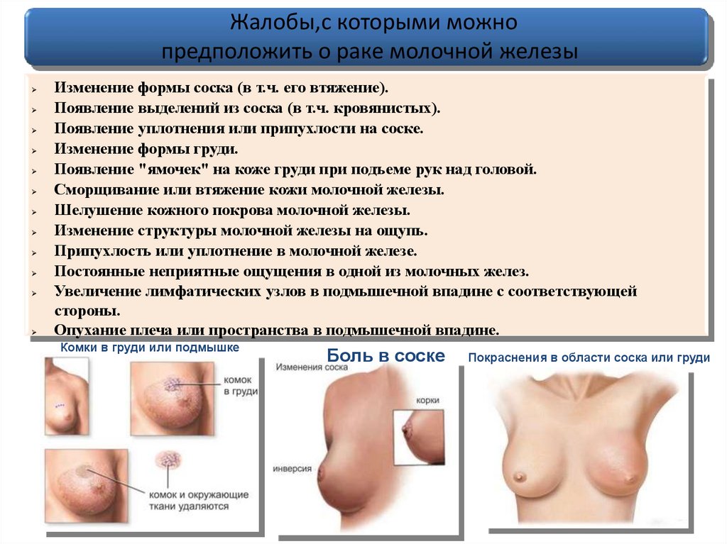 Жалобы,с которыми можнопредположить о раке молочной железы