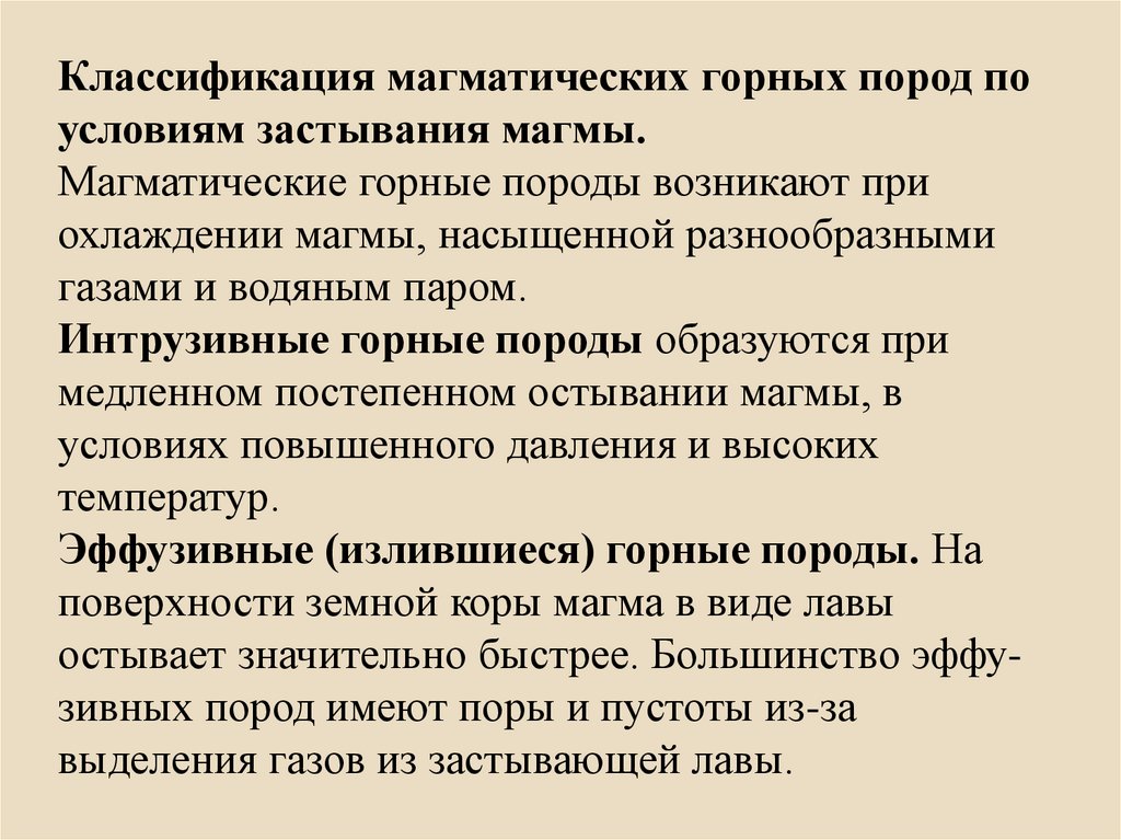 остывает значительно быстрее. Большинство эффузивных пород имеют поры и пустоты из-за