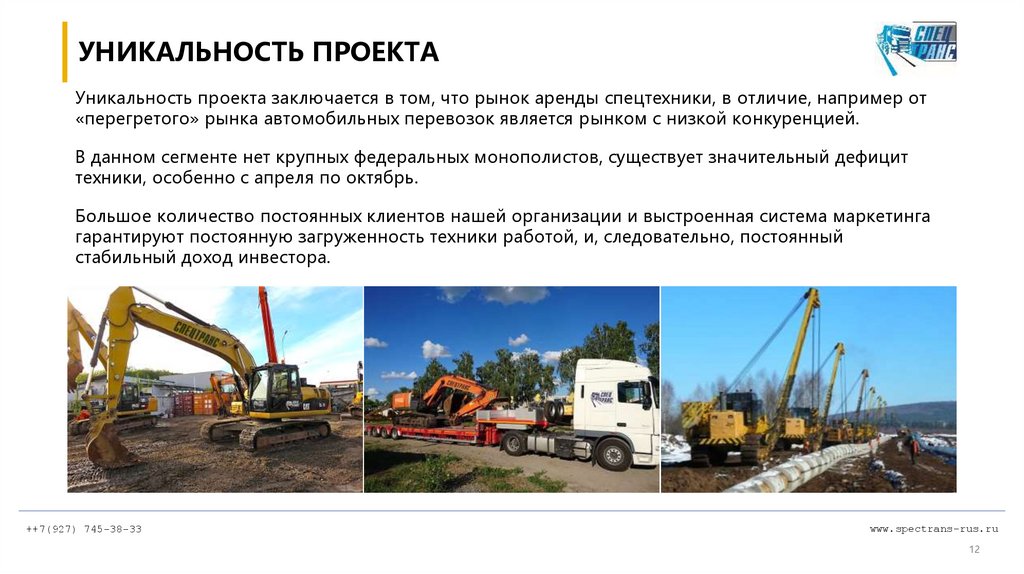 УНИКАЛЬНОСТЬ ПРОЕКТАУникальность проекта заключается в том, что рынок аренды спецтехники, в отличие, например от