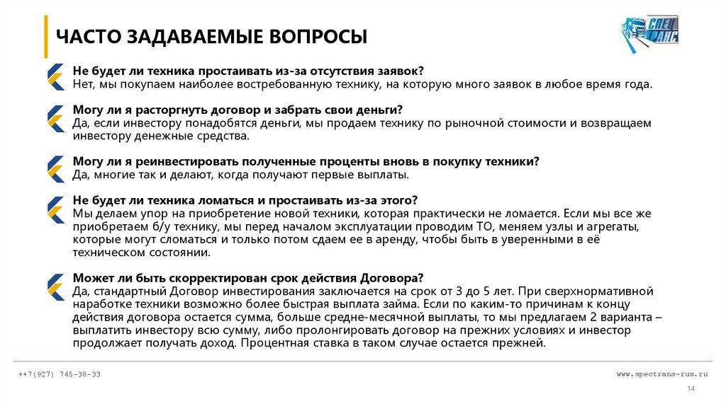 ЧАСТО ЗАДАВАЕМЫЕ ВОПРОСЫНе будет ли техника простаивать из-за отсутствия заявок?
