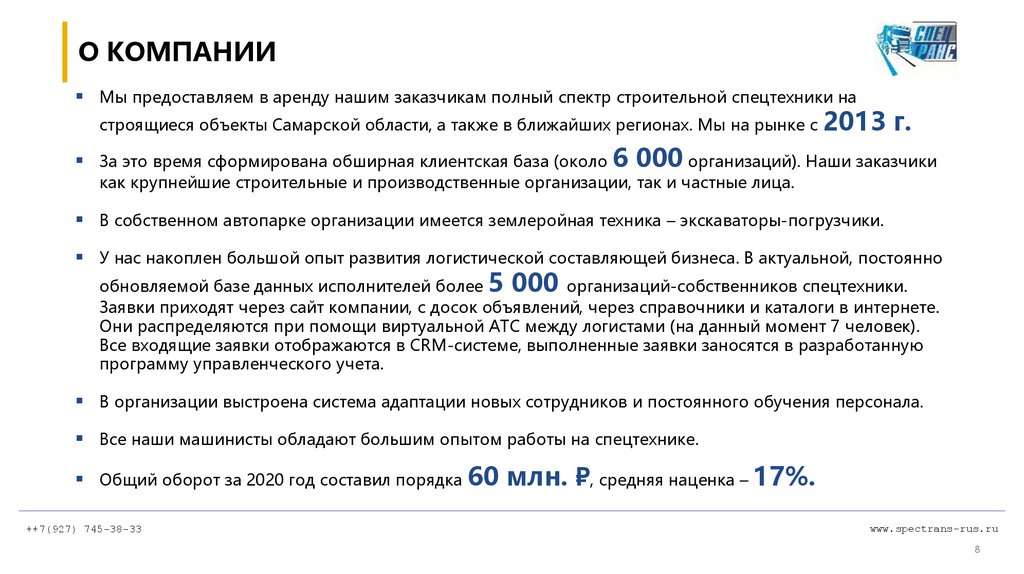 Развитая логистическая составляющая бизнеса, техника не будет простаивать из-за недостатка заявок.