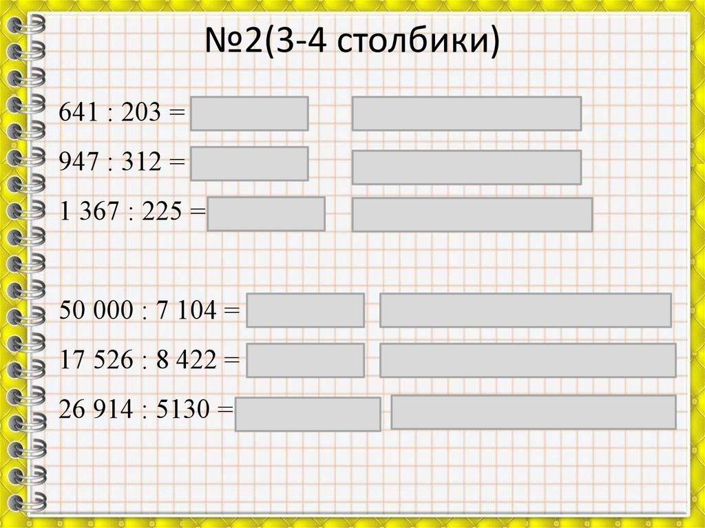 №2(3-4 столбики)641 : 203 = 3(ост.32)