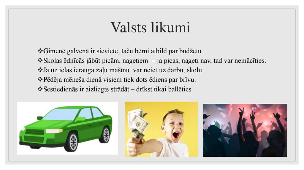 Valsts likumiĢimenē galvenā ir sieviete, taču bērni atbild par budžetu.