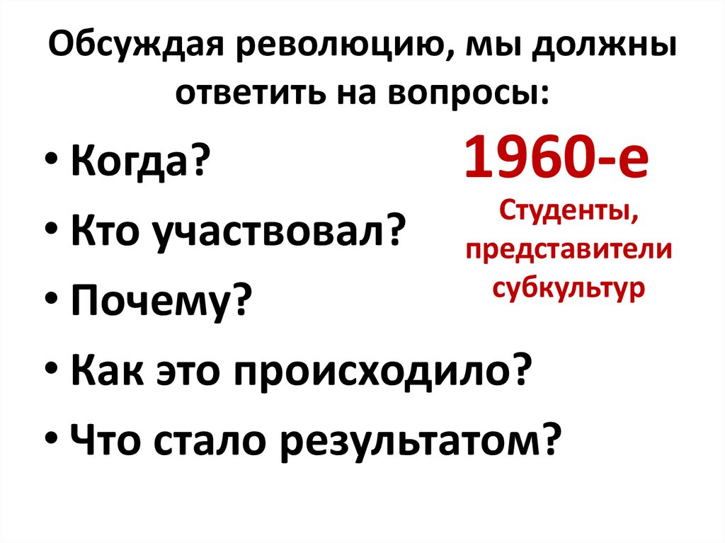 Обсуждая революцию, мы должныответить на вопросы: