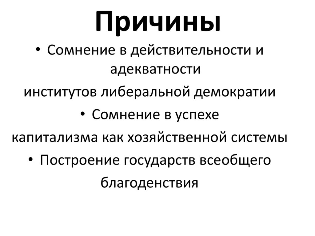 Причины• Сомнение в действительности и