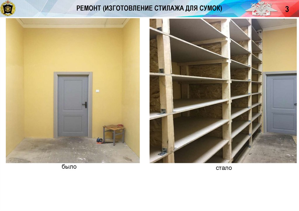 РЕМОНТ (ИЗГОТОВЛЕНИЕ СТИЛАЖА ДЛЯ СУМОК)В ходе ремонтно-восстановительных работ, силами