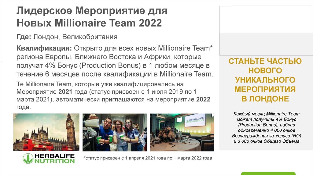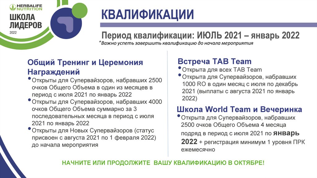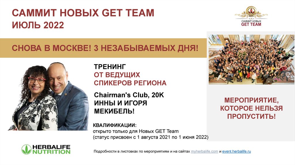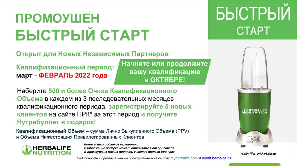 Подробности в презентациях по промоушенам и на сайтах myherbalife.com и event.herbalife.ru