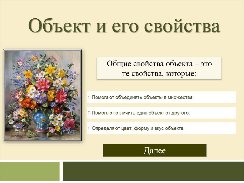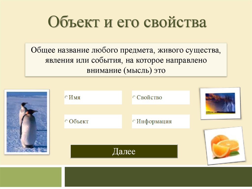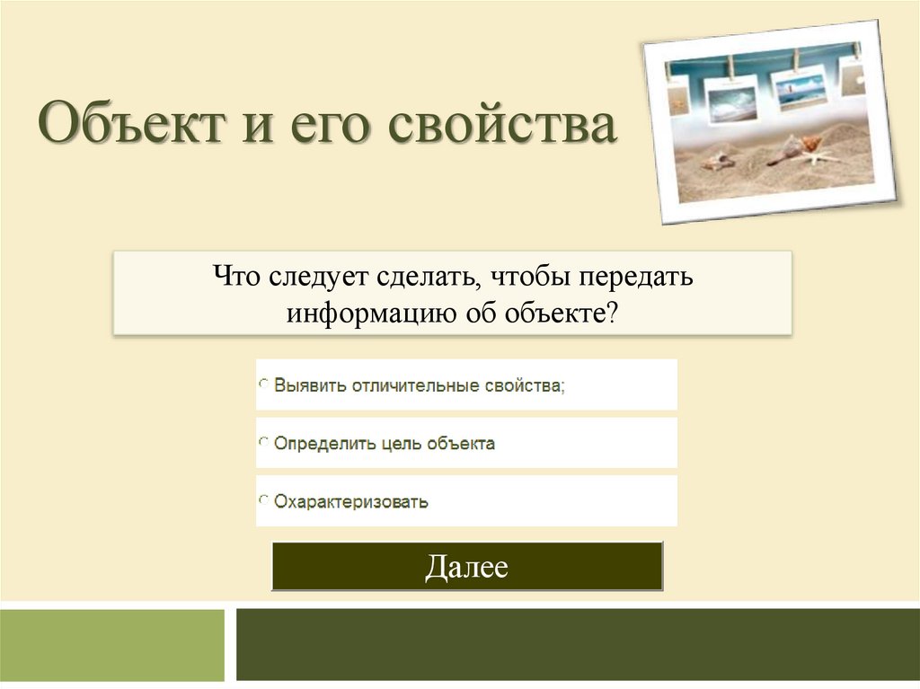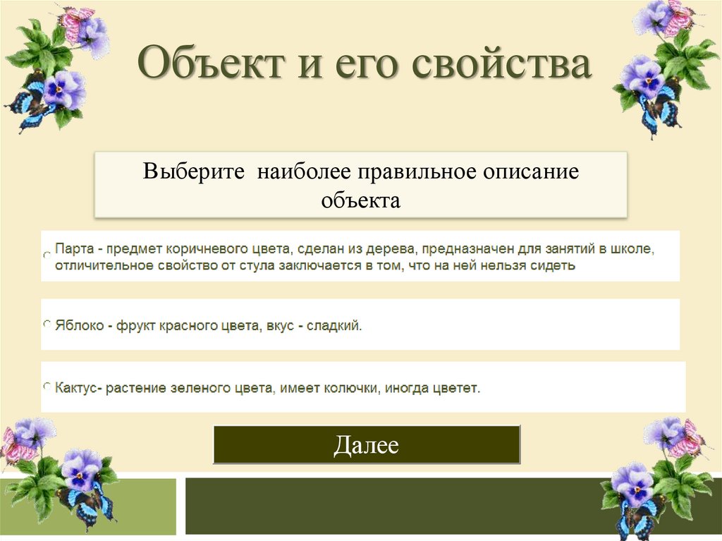 Объект и его свойстваВыберите объект, который подходит под описание: