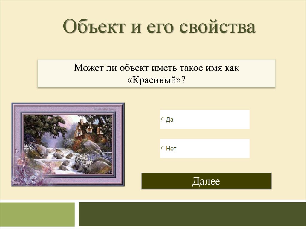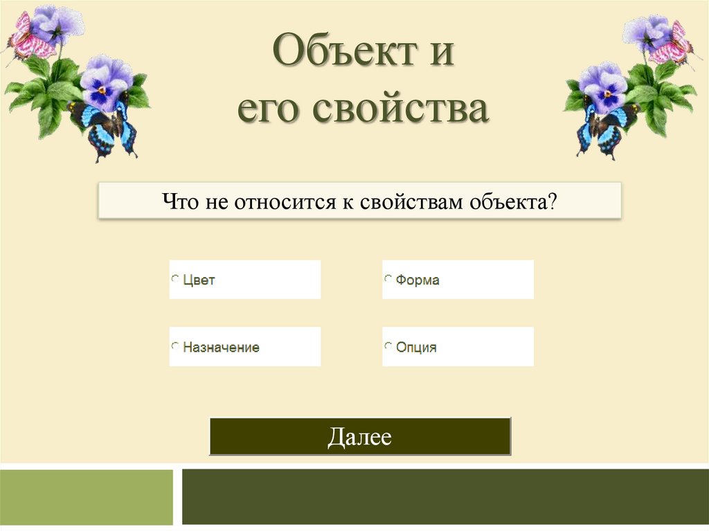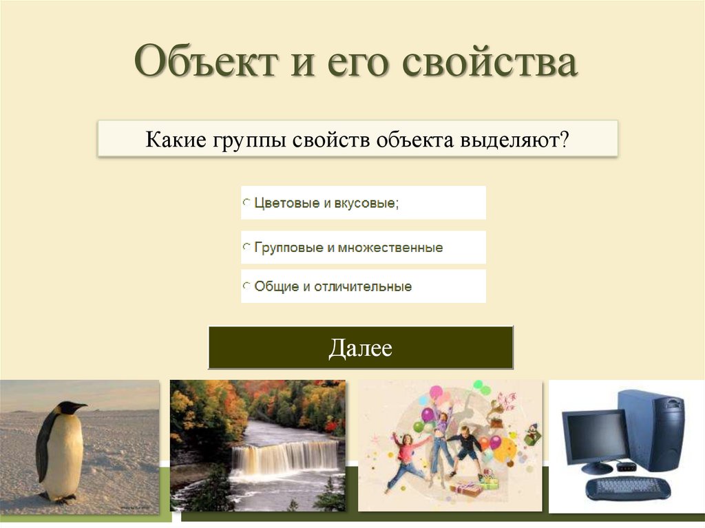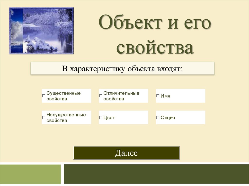 Объект и его свойстваВыберите объект, который подходит под описание: