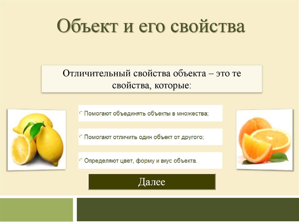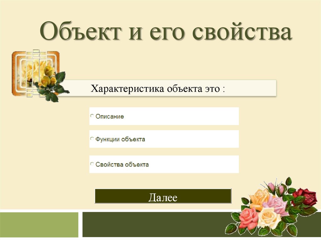 Объект и его свойстваВведите верный ответ. Если сказать об объекте,