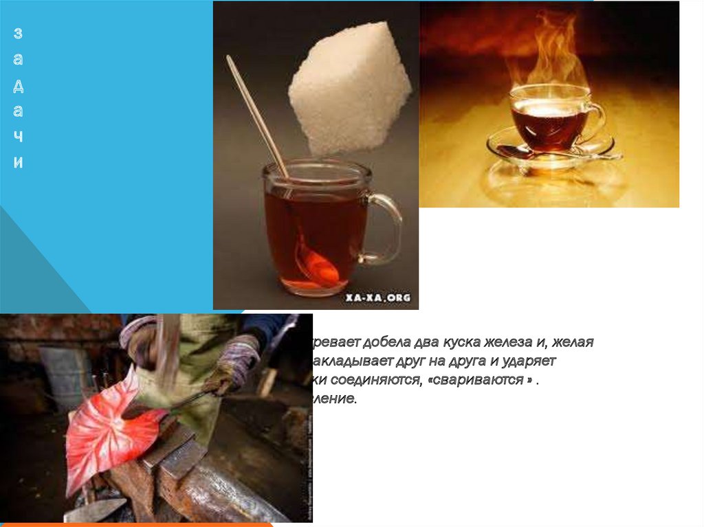 2. кузнец нагревает добела два куска железа и, желая