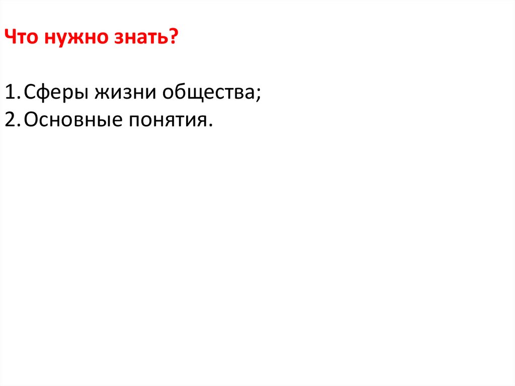 Что нужно знать?1.Сферы жизни общества;