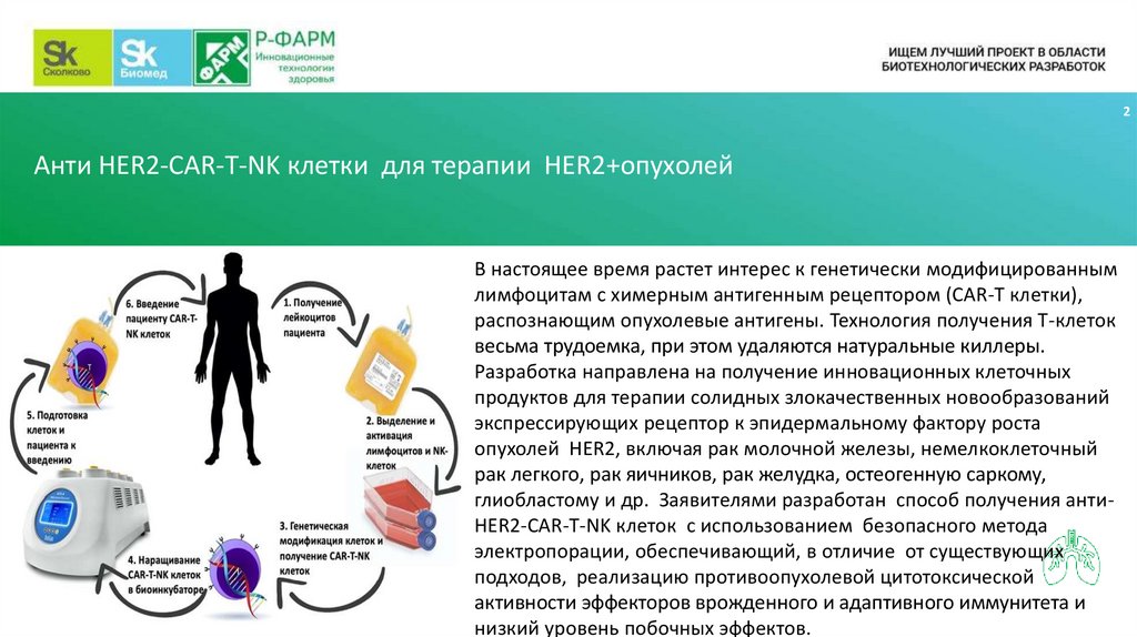 глиобластому и др. Заявителями разработан способ получения антиНЕR2-CAR-T-NK клеток с использованием безопасного метода