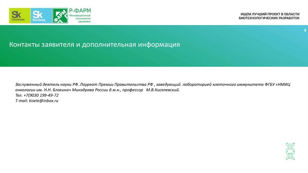 Заявка на участие в отборе перспективных биотехнологических проектов