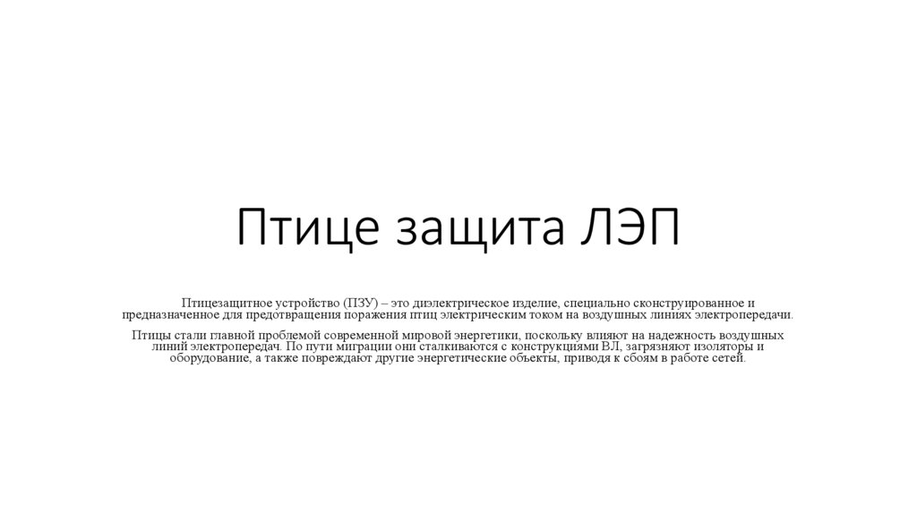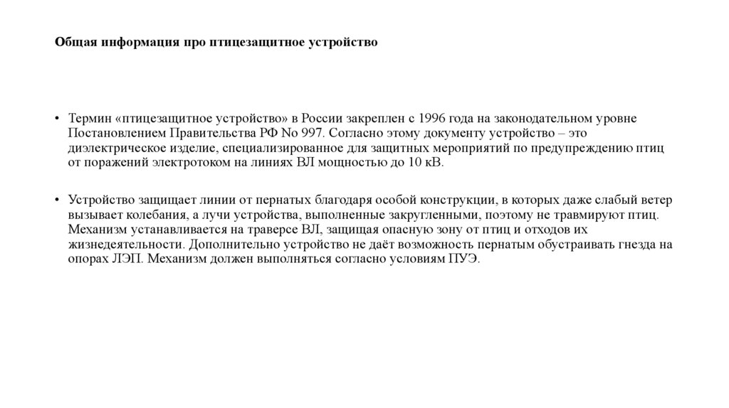Общая информация про птицезащитное устройство• Термин «птицезащитное устройство» в России закреплен с 1996 года на законодательном уровне