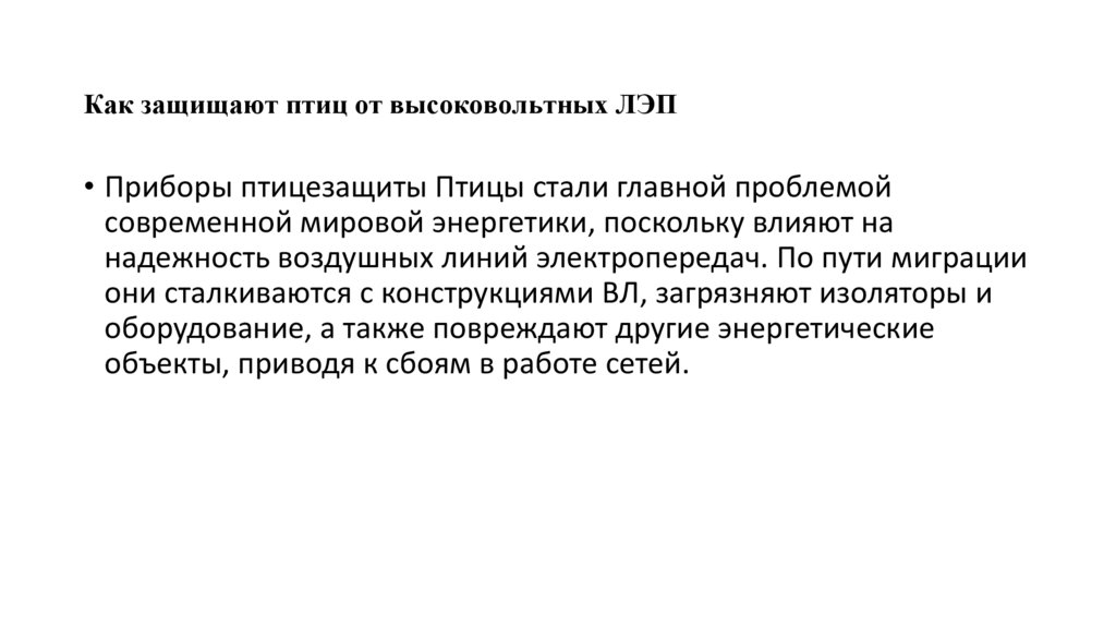 линий электропередач. По пути миграции они сталкиваются с конструкциями ВЛ, загрязняют изоляторы и