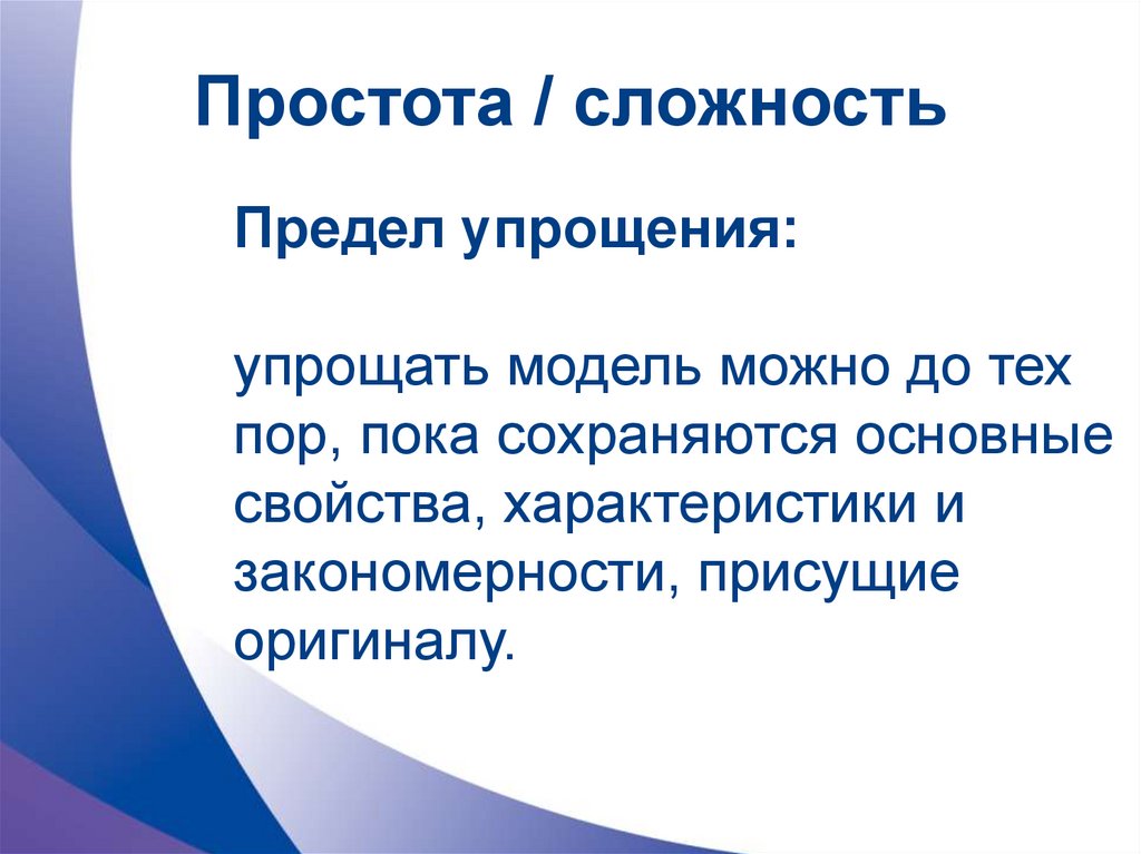 Простота / сложностьПредел упрощения: