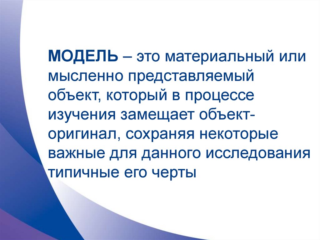 МОДЕЛЬ – это материальный илимысленно представляемый