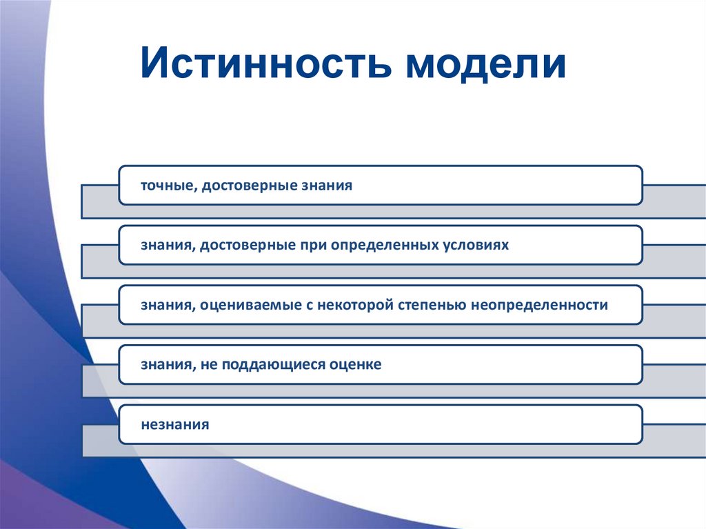 Истинность моделиточные, достоверные знания