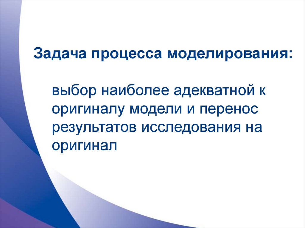 Задача процесса моделирования:выбор наиболее адекватной к