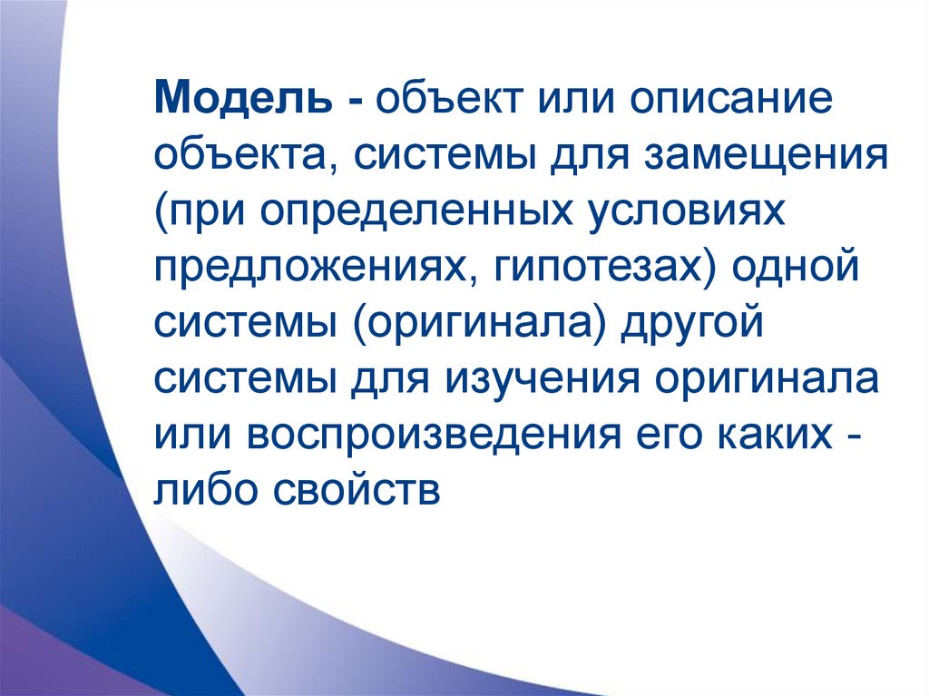 Модель - объект или описаниеобъекта, системы для замещения