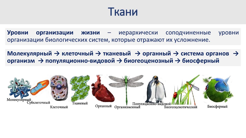 ТканиУровни организации жизни – иерархически соподчиненные