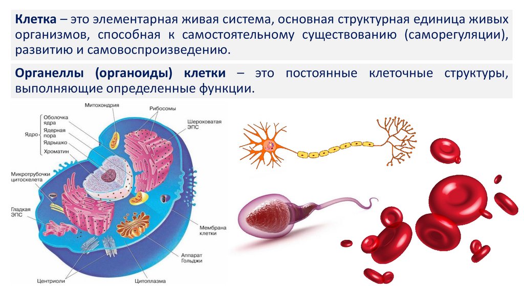 Клетка – это элементарная живая система, основная структурная единица живыхорганизмов, способная к самостоятельному существованию (саморегуляции),