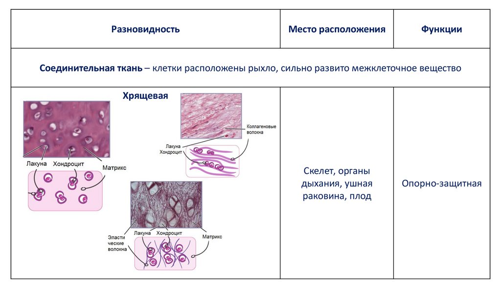 Соединительная ткань – клетки расположены рыхло, сильно развито межклеточное вещество
