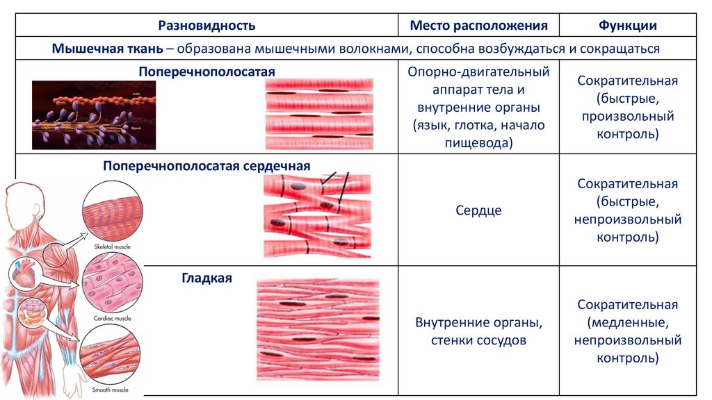 Мышечная ткань – образована мышечными волокнами, способна возбуждаться и сокращаться
