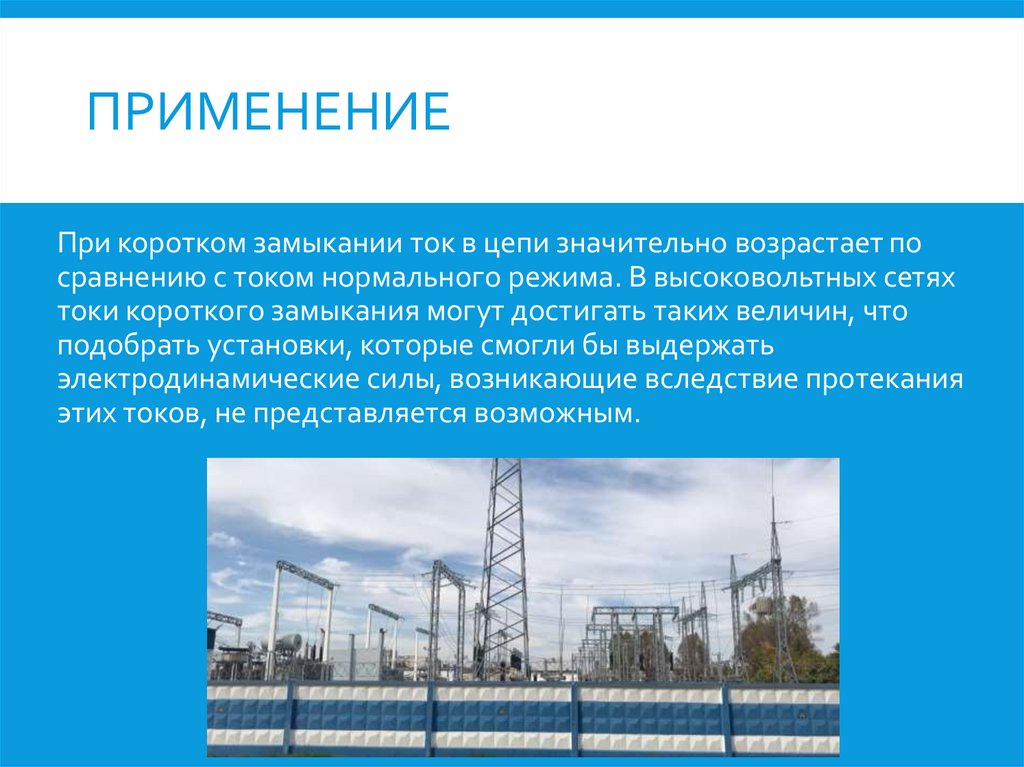 ПРИМЕНЕНИЕПри коротком замыкании ток в цепи значительно возрастает по