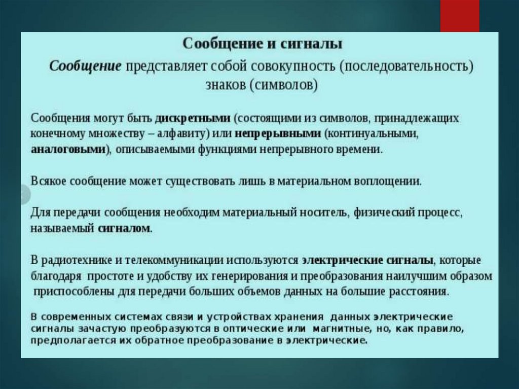 Информация и ее виды; общие принципы передачи информации с помощью средств электросвязи
