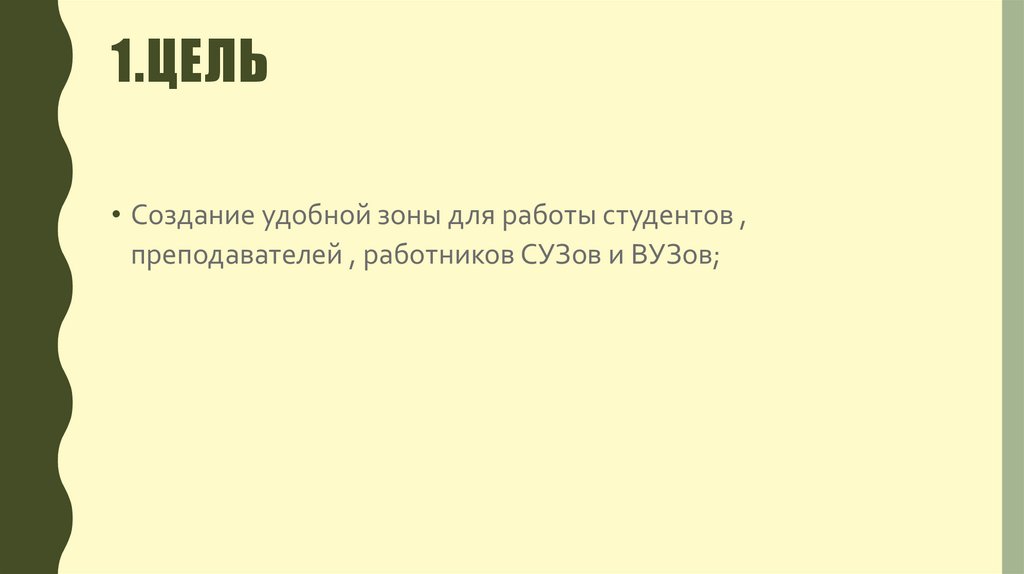 1.ЦЕЛЬ• Создание удобной зоны для работы студентов ,