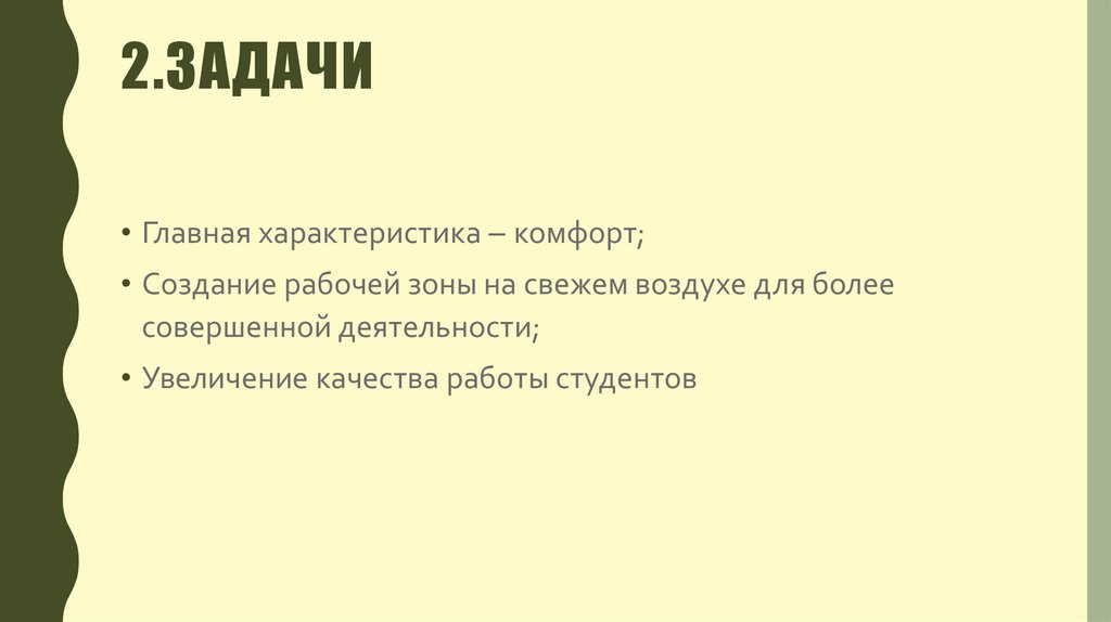 2.ЗАДАЧИ• Главная характеристика – комфорт;