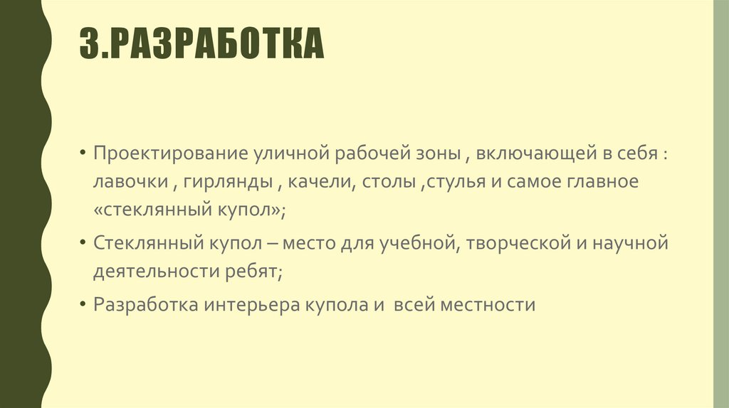 3.РАЗРАБОТКА• Проектирование уличной рабочей зоны , включающей в себя :
