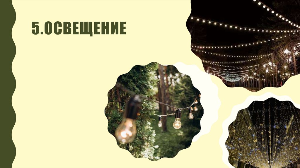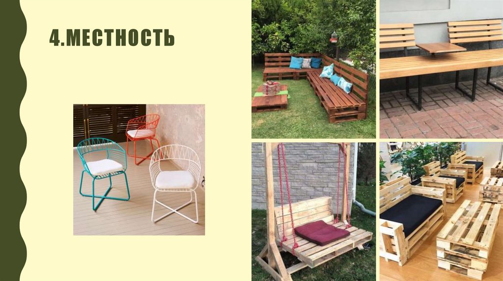лавочки , гирлянды , качели, столы ,стулья и самое главное