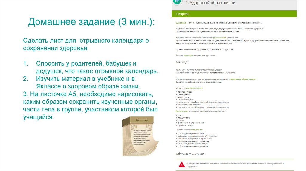 Домашнее задание (3 мин.):Сделать лист для отрывного календаря о