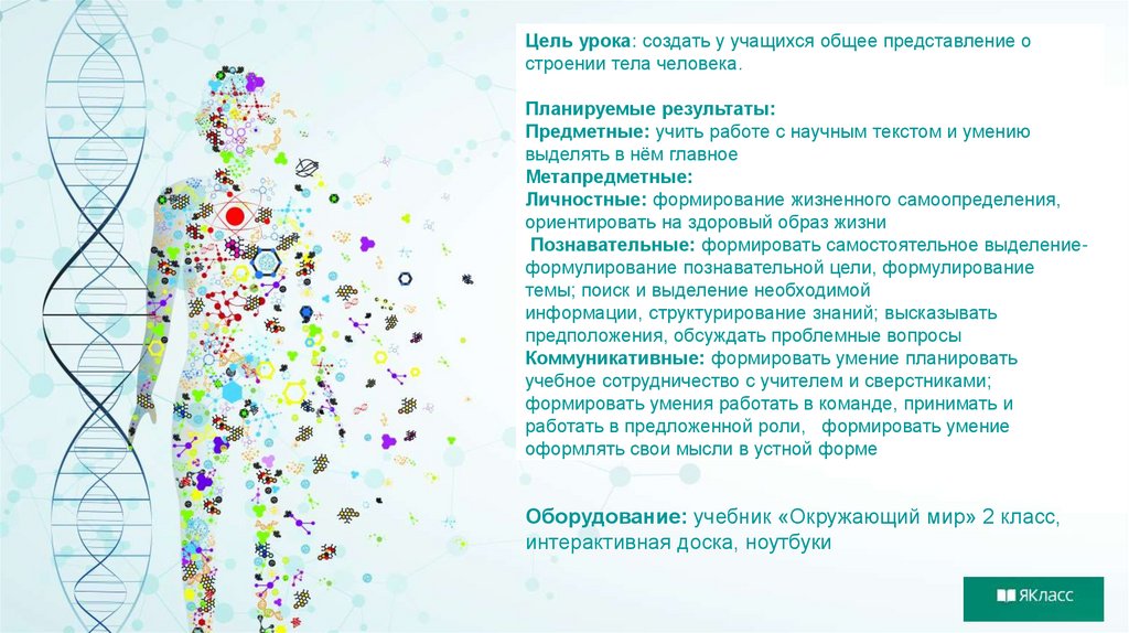 Цель урока: создать у учащихся общее представление остроении тела человека.